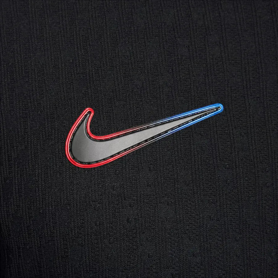 A camisa Barcelona Away 24/25 Jogador possui um design exclusivo, que combina a tradicional cor preta com detalhes em dourado, representando o brilho e a grandeza do time. Além disso, o escudo do Barcelona é estampado no peito, mostrando sua paixão pelo clube.